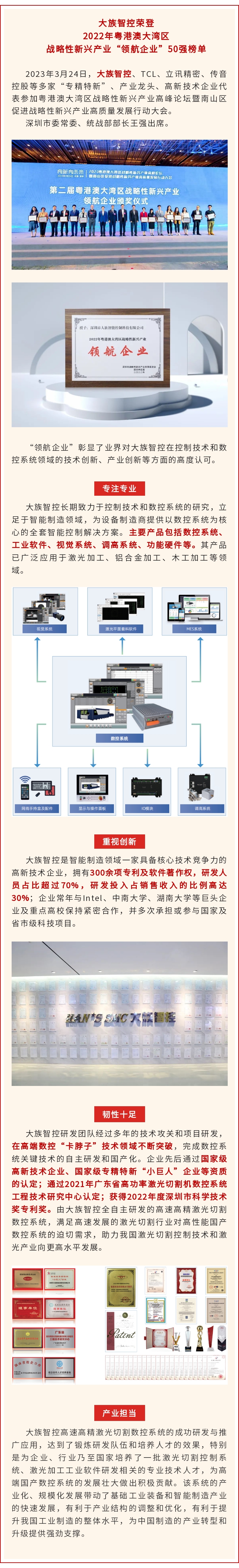 大族智控上榜2022年粵港澳大灣區戰略性新興產業“領航企業”50強