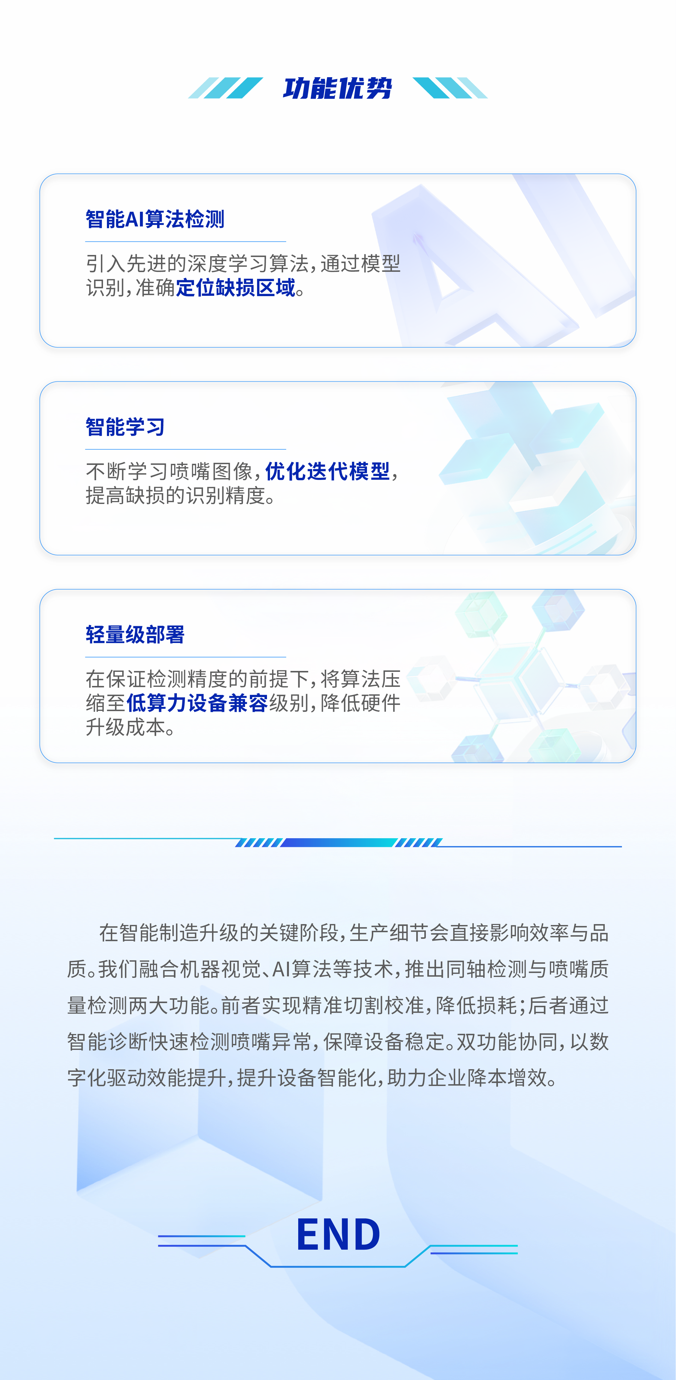 關鍵詞:大族智控視覺智能檢測功能上新,同軸檢測,噴嘴質量檢測,智能視覺系統,設備智能化升級,設備智能化、自動化