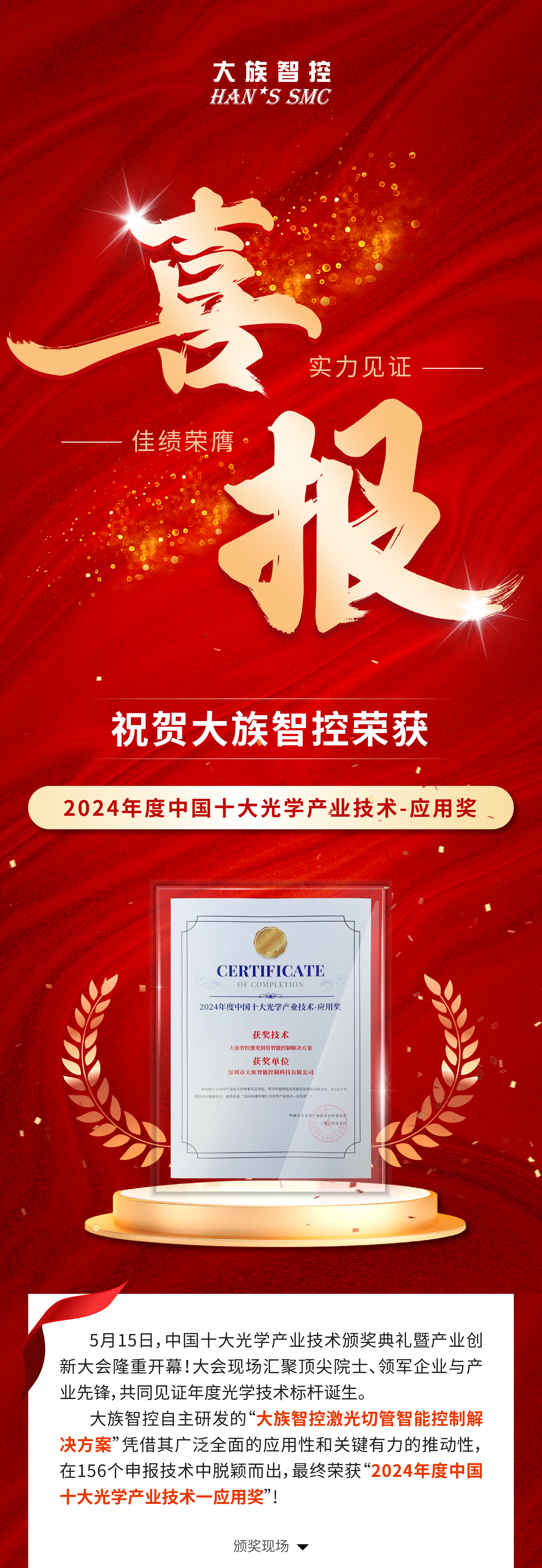 喜報丨大族智控榮獲2024年度中國十大光學(xué)產(chǎn)業(yè)技術(shù)-應(yīng)用獎!